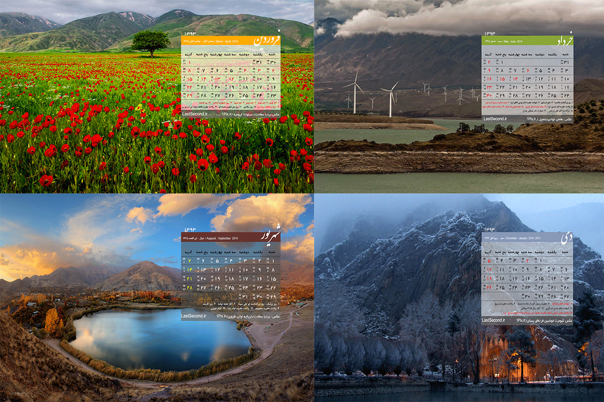 همونطور که قول داده بودیم (البته با کمی تاخیر) تقویم اختصاصی رویا دانلود رو برای سال 1393 آماده کردیم. این تقویم، تقویمی با تصاویری از طبیعت است که ما سعی داریم برای تنوع، در ادامه تقویم های هشت بهشت را نیز طبق روال گذشته برای دانلود قرار دهیم. لازم به ذکر است که تقویم کاملا اختصاصی بوده و هر گونه نمونه برداری یا قرار دادن این تقویم در سایت خودتون فقط با قرار دادن منبع و لینک مستقیم امکان پذیر است.(این تقویم، تقویم سال 93 و شامل چهار فصل: بهار،تابستان،پاییز و زمستان به صورت کامل است)